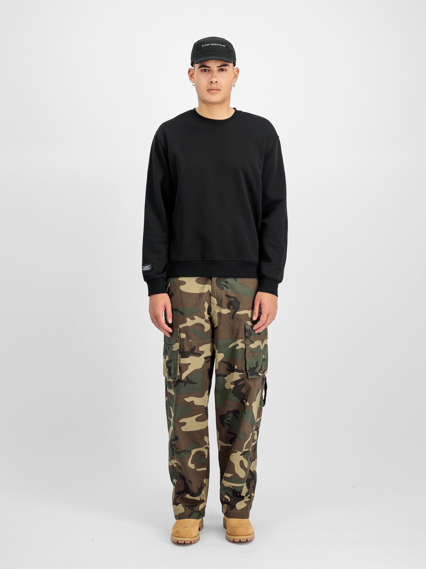 Alpha Industries Label Sweatshirt Backprint to inwestycja w styl. Łączy w sobie funkcjonalność odzieży militarnej z estetyką urban streetwear. To bazowa warstwa Twojej garderoby, wszechstronny sweter na każdą okazję – od spaceru po mieście, po wypad za miasto. Stwórz modową stylizację z jeansami, spodniami cargo czy dresami, podkreślając swój niezależny charakter.